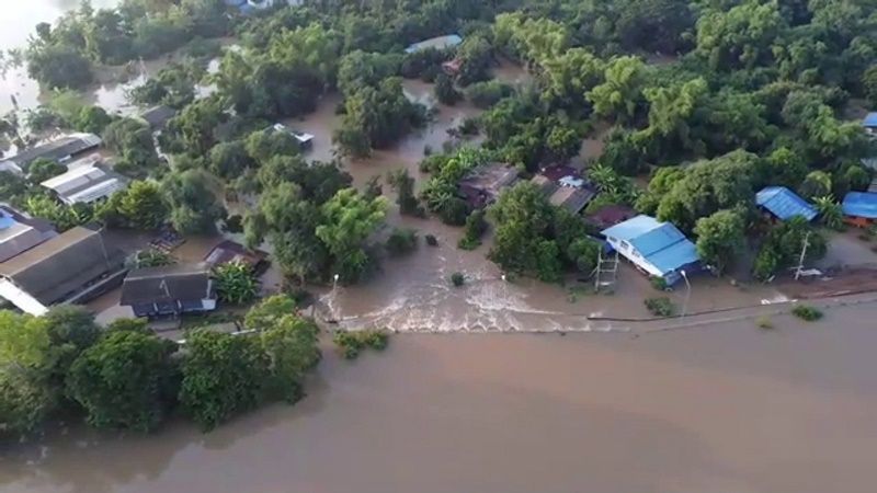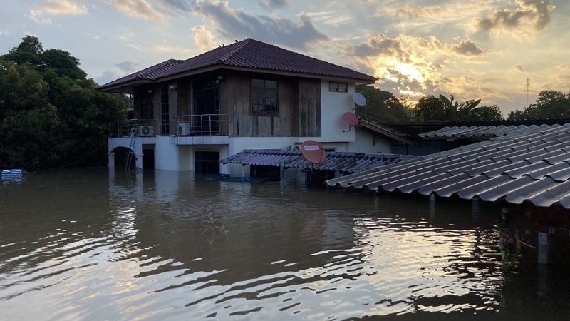 วันที่ 5 ต.ค.64 สถานการณ์น้ำเจ้าพระยาในพื้นที่หมู่ 3 ตำบลจระเข้ร้อง อำเภอไชโย จังหวัดอ่างทอง น้ำยังคงไหลบ่าเข้าท่วมพื้นที่บ้านเรือนประชาชนสูงขึ้นอย่างต่อเนื่องและยังขยายวงกว้างไปยังพื้นที่หมู่บ้านที่อยู่ใกล้เคียงอีก แม้ทางเจ้าหน้าที่จะทำการเสริมแนวคันดินกั้นเพื่อให้น้ำท่วมอยู่ในวงจำกัด แต่ด้วยกระแสน้ำที่เพิ่มขึ้นตลอดเวลาทำให้คันแนวกั้นระหว่างหมู่บ้านหลายจุดได้พังเพิ่มขึ้น ได้ส่งผลกระทบต่อหลายหมู่บ้านที่อยู่ติดริมแม่น้ำเจ้าพระยา และน้ำยังคงเอ่อล้นสูงขึ้นทำให้บ้านชั้นเดียวไม่สามารถอยู่อาศัยได้