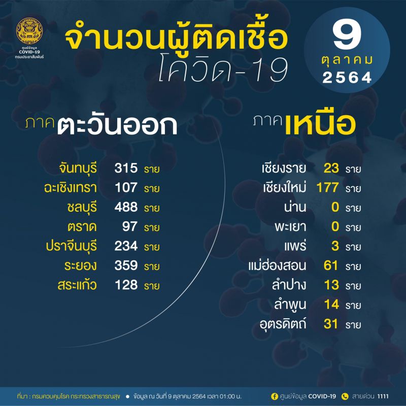 ขณะที่ยอดผู้ป่วยติดเชื้อภายในประเทศรายใหม่ จำนวน 14,583 ราย แยกตามรายภาคดังนี้