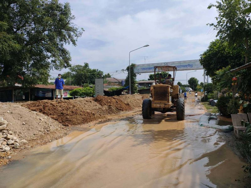 "อินทร์บุรี"วิกฤตระดับน้ำในแม่น้ำเจ้าพระยายังคงสูงขึ้นอย่างต่อเนื่อง เจ้าหน้าที่ฯ เร่งทำคันดินกั้นน้ำไม่ให้ท่วมกระจายเป็นวงกว้าง