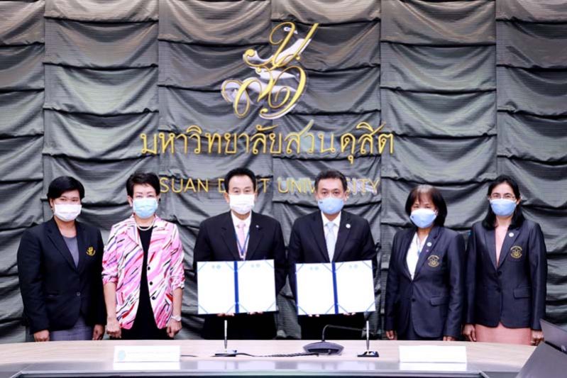 รศ.ดร.ศิโรจน์ ผลพันธิน อธิการบดีมหาวิทยาลัยสวนดุสิต และ นายเพิ่มสุขสัจจาภิวัฒน์ เลขาธิการ สำนักงานปรมาณูเพื่อสันติ ร่วมลงนามบันทึกข้อตกลงความร่วมมือทางวิชาการ พร้อมด้วยผู้บริหารจากทั้งสองร่วมเป็นพยาน สำหรับความร่วมมือในครั้งนี้มีวัตถุประสงค์เพื่อพัฒนาความร่วมมือในการถ่ายทอดองค์ความรู้ และสนับสนุนการจัดการศึกษาด้านเทคโนโลยีนิวเคลียร์และรังสีที่สอดคล้องกับแนวทางนโยบายการศึกษาของประเทศไทย