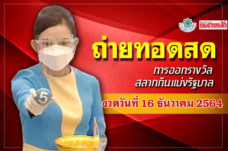 ชมสด! ผลสลากกินแบ่งรัฐบาล ประจำวันที่ 16 ธันวาคม 2564