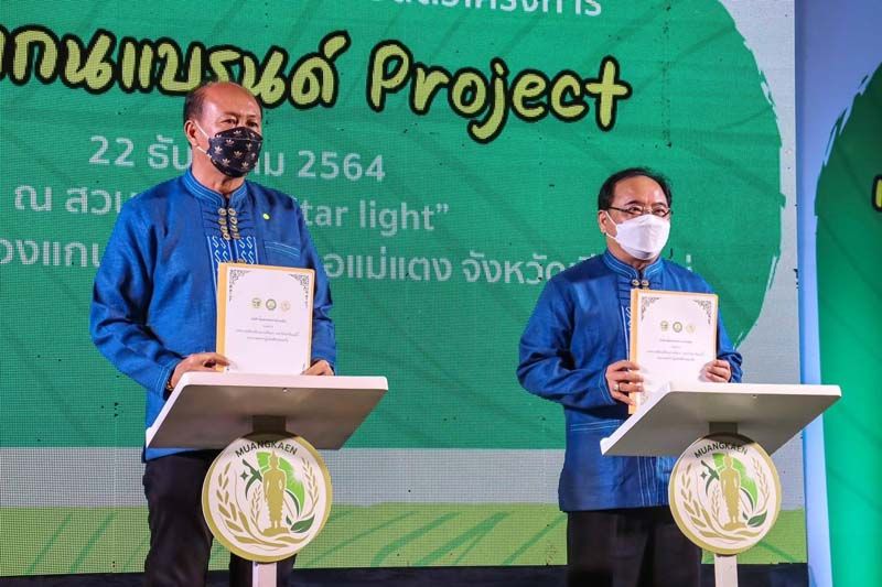 23 ธันวาคม 2564 ที่สวนดอกไม้ "STAR LIGHT" เทศบาลเมืองเมืองแกนพัฒนา อ.แม่แตง จ.เชียงใหม่ ได้แถลงข่าวพิธีลงนามบันทึกข้อตกลงและเปิดตัวโครงการ "โครงการเมืองแกนแบรนด์ Project" เมืองเกษตรปลอดภัย โดยมี รศ.ดร.วีระพล ทองมา อธิการบดีมหาวิทยาลัยแม่โจ้ ลงนามข้อตกลงกับนายประพันธ์ ชัยอินตา นายกเทศมนตรีเมืองเมืองแกนพัฒนา ลงนามร่วมกับนางศรีนวล ทองเหลือง ประธานกลุ่มเกษตรกร ลงนามร่วมกับ รศ.ดร.ระพีพันธ์ แดงตันกี ประธานกรรมการดำเนินการโครงการฯ ลงนามร่วมกับนายอรรถวุฒิ พึ่งเนียม นายอำเภอแม่แตง และนางรัชนีวรรณ์ เป็งพรม นักวิชาการส่งเสริมเกษตรชำนาญการ รักษาการแทนเกษตรอำเภอแม่แตง พยานการลงนามบันทึกข้อตกลงความร่วมมือ ซึ่งเป็นการประชาสัมพันธ์การจัดงาน "หนามนี้ที่เมืองแกน ครั้งที่ 12" กำหนดจัดขึ้นวันที่ 25 ธ.ค.2564 ถึง 3 ม.ค. 2565 พร้อมแถลงข่าวการประกวดนางสาวแม่แตง