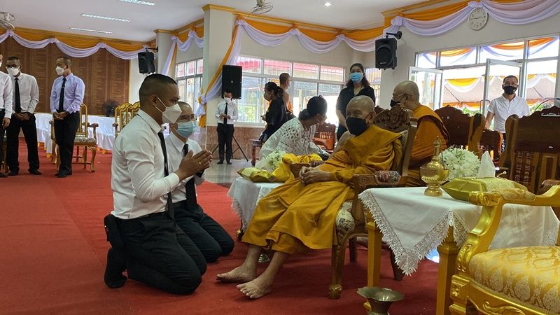 พระสงฆ์ สามเณร ประชาชนและศิษยานุศิษย์ร่วมรับศพพระธรรมวงศาจารย์ อดีตเจ้าอาวาสวัดโคกสมานคุณ อายุ 85 ปี ที่ปรึกษาเจ้าคณะภาค 18 กิติมาศักดิ์ พร้อมร่วมพิธีรดน้ำศพ ขณะที่ ผบช.ภ.9 ลงพื้นที่เรียกประชุมตำรวจเร่งคลี่คลายคดี