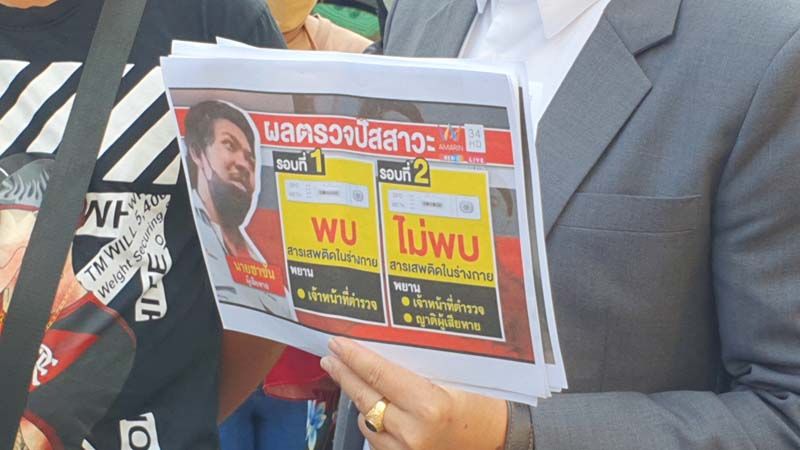 ทนายไพศาล ได้กล่าวว่า วันนี้ได้พาผู้เสียหายเดินทางมาแจ้งความดำเนินคดีโดยจะมีการแยกกันแจ้งเป็นทั้งคดีอาญาและคดีแพ่งโดยจะเป็นทั้งสองส่วน ในส่วนของอาญาก็มีหลายข้อหาอยู่ ตามพฤติการณ์ตามที่แจ้งมาเบื้องต้นก็มีทำร้ายร่างกาย และในส่วนของผลตรวจที่ยืนยันครั้งแรกว่ามีผลเป็นบวกแต่ครั้งที่สองเป็นลบ และยังมาบอกว่าผู้เสียหายมียาเสพติดซึ่งทางผู้เสียหายก็ได้ยืนยันแล้วว่าไม่ใช่ ก็ถือว่าเป็นปฎิบัติหน้าที่โดยมิชอบ และการที่ไปควบคุมตัวผู้เสียหายทั้งที่ตัวผู้เสียหายเองบอกว่าไม่ใช่ซึ่งตรงนี้ก็กลายเป็นกักขังหน่วยเหนี่ยวในเรื่องเสรีภาพและการข่มขู่ด้วย ส่วนเมื่อวานที่มีการเข้ามอบกระเช้าของโทษนั้นตรงนั้นก็ไม่เกี่ยวกัน มอบคือส่วนมอบส่วนเรื่องกฎหมายก็คือกฎหมาย