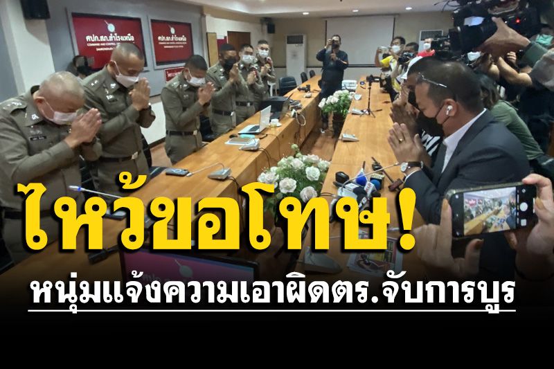 ทนายไพศาลพาเหยื่อการบูรเข้าแจ้งความเอาผิดตำรวจและอาสา ขณะที่ผู้กำกับยกมือไหว้ขอโทษแลยืนยันให้ความเป็นธรรม