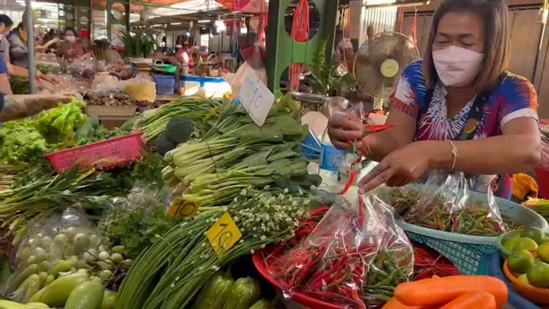 พ่อค้าแม่ค้าตลาดลุงหนู ที่จังหวัดระยอง สวนกระแส ตรึงราคาวัตถุดิบในการประกอบอาหาร พืชผัก 5 บาท 10 บาท ยังหาซื้อได้ พ่อค้าแม่ค้ายืนยันไม่ขึ้นราคา
