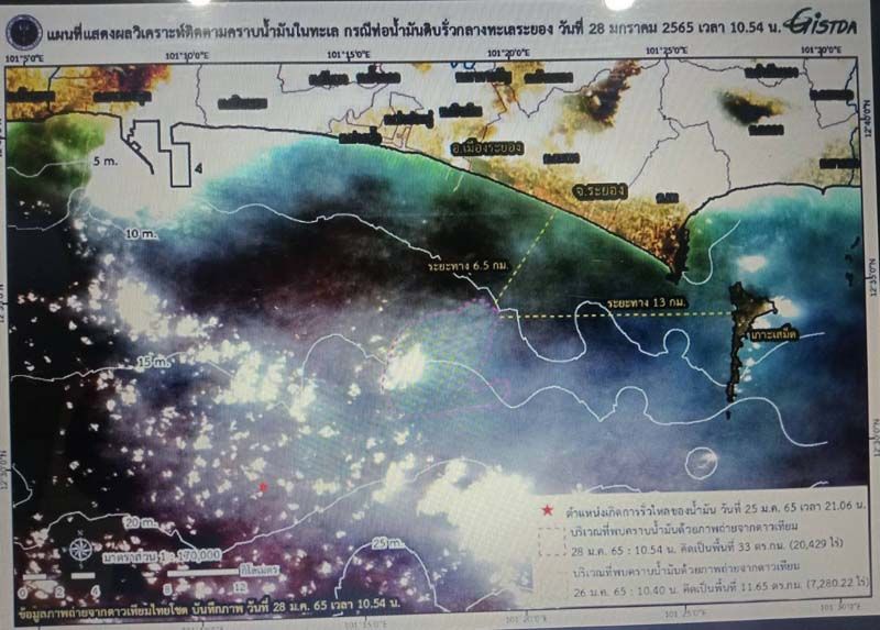 พลเรือโทพิชัย ล้อชูสกุล ผู้อำนวยการศูนย์ควบคุมการปฏิบัติการในการป้องกันและขจัดมลพิษทางน้ำเนื่องจากน้ำมัน ทัพเรือภาคที่1/ ผู้บัญชาการทัพเรือภาคที่1 ได้กล่าว หลังการประชุมติดตามความคืบหน้ากรณีน้ำมันรั่วกลางทะเล ที่ห้องประชุมสำนักงานท่าเรืออุตสาหกรรมมาบตาพุด อ.เมือง จ.ระยอง ว่า จากการสำรวจตรวจสอบทางอากาศ ทางภาคพื้นน้ำ คำนวณได้ว่ากระแสน้ำจะพัดพาคราบน้ำมันไปถึงบริเวณหาดก้นอ่าว-แม่รำพึง ในเวลาประมาณ 22.00 น.วันที่ 28 ม.ค.65 ซึ่งขณะนี้ได้จัดตั้งศูนย์วอร์รูม บัญชาการอยู่ที่บริเวณเขาแหลมหญ้าแล้ว ฝ่ายแผนและกลยุทธ์ ฝ่ายปฏิบัติการ ซึ่งมีทั้งทางน้ำและชายฝั่ง และฝ่ายสนับสนุน โดยบูรณาการการปฏิบัติร่วมกับหน่วยงานราชการ และภาคเอกขนอื่นๆ เพื่อทำการรับมือเหตุการณ์ในครั้งนี้ วงรอบในการทำงานจะมี ทั้งการวางแผนชี้แจงการปฏิบัติกลยุทธ์ต่างๆ พร้อมทั้งรวบรวมและสรุปผลในการปฏิบัติต่างๆเครื่องมือที่ใช้ในทะเลได้แก่ เรือจำนวน 12 ลำ เป็นเรือของกองทัพเรือ หน่วยงานราชการต่าง ๆ และเรือของภาคเอกชนปฏิบัติงานร่วมกับอากาสยานของกองทัพเรือ