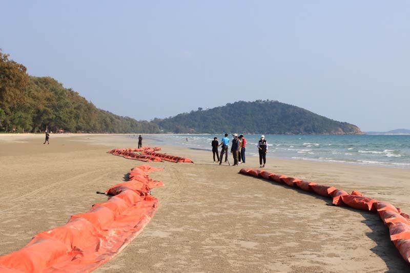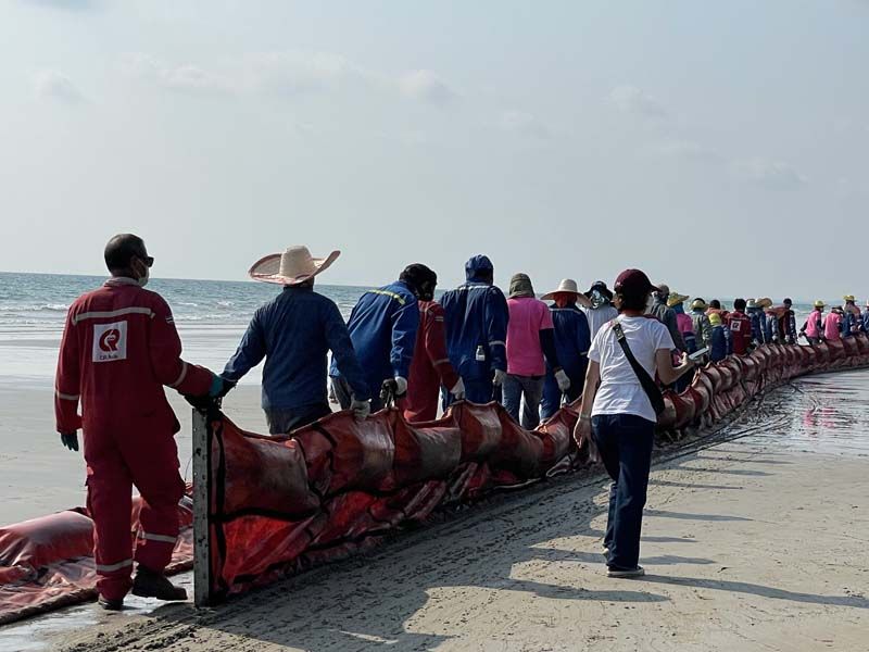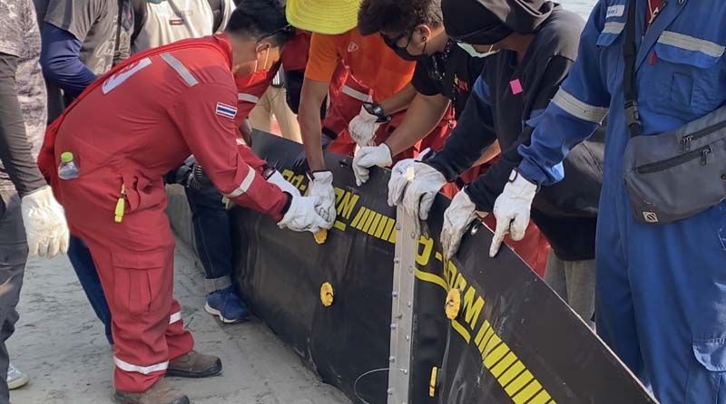 วันที่ 28 มกราคม 2565 จากกรณีพบน้ำมันดิบรั่วไหล บริเวณทุ่นผูกเรือน้ำลึกแบบทุ่นเดี่ยวกลางทะเล หรือจุดขนถ่ายน้ำมันในทะเล ซึ่งอยู่ห่างจากชายฝั่งท่าเรือมาบตาพุด จ.ระยอง ไปทางทิศตะวันออกเฉียงใต้ ประมาณ 20 กิโลเมตร เมื่อวันที่ 25 ม.ค.ที่ผ่านมา ซึ่งทุกภาคส่วนกำลังเร่งช่วยกันแก้ไข ซึ่งคราบน้ำมันถูกคลื่นซัดประชิดชายหาดห่างจากฝั่งเพียง 4 กิโลเมตร เจ้าหน้าที่นำบีชบูม ยาวกว่า 350 เมตร ตามแนวชายหาดข้างท่าเทียบเรือ ไออาร์พีซี ต.เชิงเนิน อ.เมือง จ.ระยอง เพื่อกันคราบน้ำมันทะลักเข้าสู่ชายหาด ตั้งแต่เมื่อวานนี้ และในวันนี้ ยังได้นำบีชบูมมากางไว้ที่บนชายหาดแม่รำพึง ความยาวรวม 400 เมตร มาเพื่อสกัดคราบน้ำมัน ที่ผู้เชี่ยวชาญคาดการณ์ว่าจะเข้าถึงฝั่งภายในคืนนี้