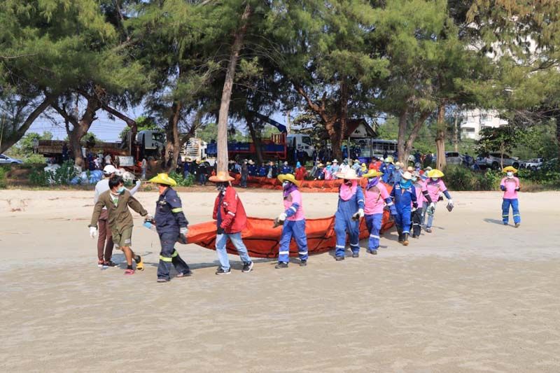 ความคืบหน้าล่าสุด นายชาญนะ เอี่ยมแสง ผวจ.ระยอง พร้อมด้วย นายยุทธพล องอาจอิทธิชัย รองผวจ.ระยอง นายธวัช เจนการ หน.อุทยานแห่งชาติเขาแหลมหญ้า-หมู่เกาะเสม็ด และนายไพรัตน์ อรุณเวสสะเศรษฐ นายกเทศมนตรีตำบลบ้านเพ พร้อมด้วยเจ้าหน้าที่ของ บริษัท SPRC ปิโตรเลียม รีไฟน์นิ่ง จำกัด ลงพื้นที่ ติดตามการเตรียมความพร้อม สกัดคราบน้ำมัน บริเวณชายหาดก้นอ่าว-แม่รำพึง ม.1 ต.เพ อ.เมือง จ.ระยอง