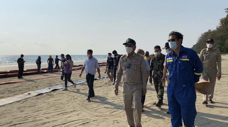 นายชาญนะ เอี่ยมแสง ผวจ.ระยอง ได้กล่าวว่า ที่เดินทางมาตรวจ เพื่อเป็นกำลังใจให้กับคณะทำงาน ส่วนเรื่องน้ำมันจะเข้าหรือไม่ตอนไหน ยังคงตอบไม่ได้ แต่มีการเตรียมพร้อมรับมือแล้ว จากภาพถ่ายดาวเทียม ที่กระจายไปวงกว้าง จะเห็นว่าที่เหลือเป็นแค่ฟิล์มบางๆ ที่ยังมีระยะห่างจากฝั่งประมาณ 4 กิโลเมตร จึงมีการป้องกันไว้ก่อน โดยการวางบีชบูมสกัดเพื่อไม่ให้น้ำมันเข้าสู่ชายฝั่ง ฝากชาวบ้านอย่าตื่นตระหนกและเชื่อข่าวลือ
