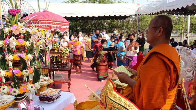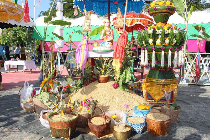 จึงมาปรึกษาที่วัดอยากให้ทำในที่วัดที่ชุมชนเพื่อทำพิธีสู่ขวัญข้าวตามประเพณี เพื่อเป็นสิริมงคลเอาข้าวมาทำพิธีสู่ขวัญแล้วตามโบราณที่เชื่อว่าเวลาเอาข้าวไปตกกล้าทำนาแล้วจะได้พืชผลงอกงามดี เป็นการเคารพต่อแม่พระโพสพที่ได้เลี้ยงกำเนิดเกิดมา คนเกิดมาจากพ่อแม่ พอเสร็จแล้วได้อาศัยแม่โพสพเลี้ยงชีวิต โดยชาวบ้านจะเอาข้าวของแต่ละบ้านมาด้วยเพื่อจะเอาไปทำข้าวปลูกในฤดูกาลปลูกใหม่ บางคนหากไม่ได้ทำนาก็ให้เอาข้าวมา ทำพิธีเสร็จให้นำใส่พานขึ้นสักการะบูชาเป็นสิริมงคล