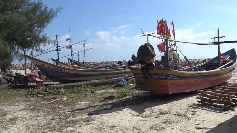 ชาวประมงพื้นบ้านบ่ออิฐต้องหยุดออกเรือจับปลา หลังศูนย์อุตุนิยมวิทยาภาคใต้ฝั่งตะวันออก แจ้งเตือนคลื่นลมในทะเลมีกำลังแรง วันที่ 23-26 ก.พ.65 บริเวณชายหาดบ่ออิฐวันนี้มีเรือประมงพื้นบ้านจอดเรียงรายเต็มชายหาด ชาวประมงพื้นบ้านบอกว่า หลังอุตุใต้แจ้งเตือนคลื่นลมแรง วันนี้จึงไม่นำเรือออก จับปลาต้องหยุดไปจนถึงวันที่ 26 ก.พ.65