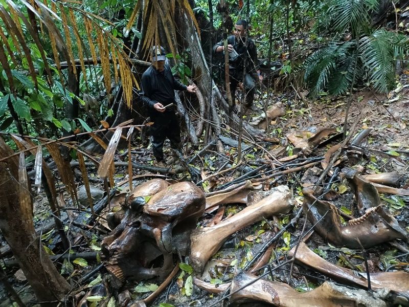 วันที่ 26 ก.พ.65 ตชด.ภาค 4 ได้รับแจ้งข่าวว่า มีกลุ่มคนจะเข้าไปในเพื่อยิงช้างป่า เพื่อเอางาไปขายบริเวณท้องที่ ต.บาโหย อ.สะบ้าย้อย จ.สงขลา รอยต่อบริเวณคลองเทพา คลองฆะระ หมู่ที่ 6 ต.บาละ อ.กาบัง จ.ยะลา จึงส่งกำลัง ตชด.ประสานงานกำลังทุกส่วน และชาวบ้าน เข้าติดตามหาข่าวสาร ตลอดมา 1 เดือน จนพบจุดช้างป่าตายบนเขา