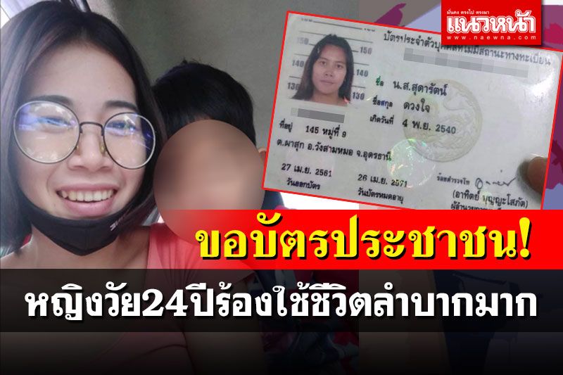 สาวอุดรวัย 24 ปีร้องสื่อ 24 ปีไร้บัตรประชาชน เกิดเป็นคนไทยทั้งทีชาตินี้อยากได้บัตรประชาชนบ้าง เผยติดต่อราชาการและดำเนินชีวิตหลายอย่างลำบาก เคยเห็นหนุ่ย หน้าลาย ลูกชายสมคิดเดอะริปเปอร์เมืองไทยได้บัตรประชาชนเผื่อมีช่องทางได้กับเขาบ้าง