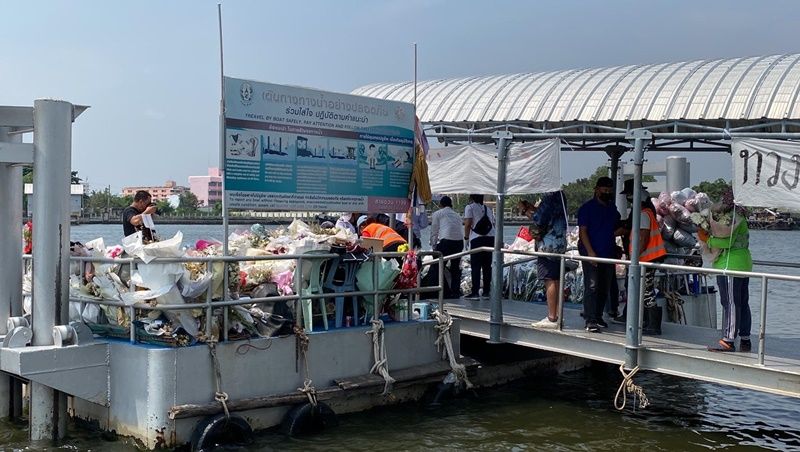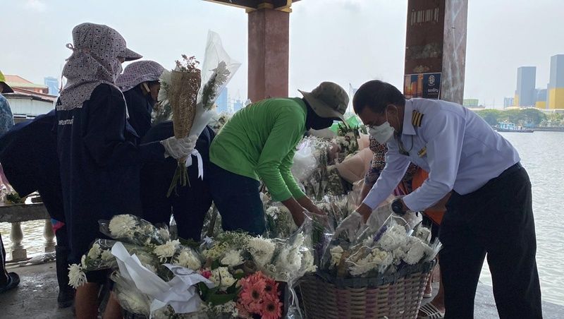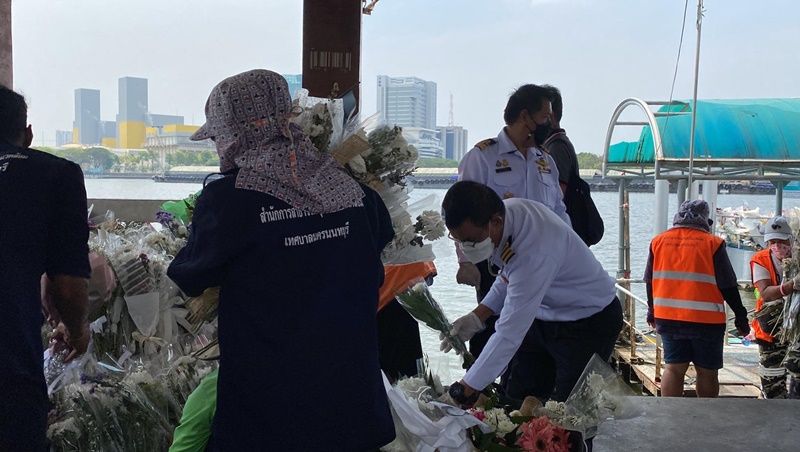 ต่อมานายอำนาจ สอนหมวก ผู้อำนวยการสำนักงานเจ้าท่าภูมิภาคสาขานนทบุรี เดินทางมาที่โป๊ะเรือ เผยว่า วันนี้เราไม่ได้มาห้ามให้ประขาชนมาวางดอกไม้ เราเพียงแค่ประสานทางเทศบาลนครนนทบุรี ให้เข้ามาจัดเก็บดอกไม้ในส่วนที่เก่าและเริ่มเน่าออกเท่านั้นเอง อีกอย่างตอนนี้จำนวนดอกไม้มีจำนวนมากจนเต็มโป๊ะเรือ อาจจะทำให้เกิดอันตรายกับประชาชนที่มาวางดอกไม้เราห่วงตรงนี้ มากกว่า - 003