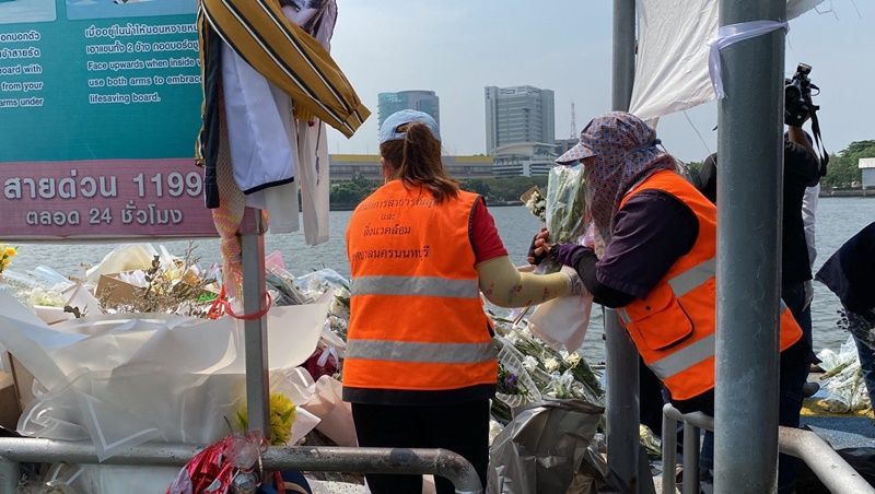 นายสุรินทร์ สะและสกุล อายุ 67 ปี ประธานชุมชนพิบูลสงคราม 1 เดินทางมาที่ท่าเรือพิบูลย์สงคราม 1 กล่าวว่า ในส่วนเรื่องช่อดอกไม้ที่กลุ่มแฟนคลับและประชาชนที่นำมาวางบนโปํะท่าเทียบเรือ เพื่อแสดงออกถึงความอาลัยต่อดาราสาว ผู้ล่วงลับนั้น ส่วนตัวเป็นห่วงเรื่องความสะอาด อีกส่วนนั้นยังมีพี่น้องประชาชนและแฟนคลับยังมีความรักความอาลัยและก็ถ่ายภาพความทรงจำอันดีเป็นที่ระลึก ไม่เพียงแต่คนในประเทศเท่านั้นรวมทั้งต่างประเทศด้วย เนื่องจากดาราสาวผู้เสียชีวิตมีคนรักเป็นจำนวนมาก ดอกไม้ในแต่ละดอกหรือแต่ละช่อเป็นสิ่งที่บ่งบอกในความรักและความอาลัย