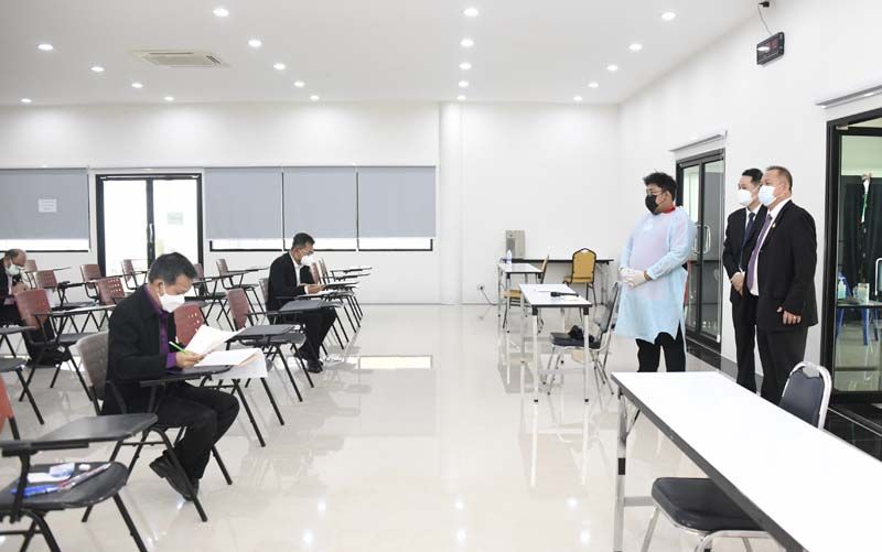 ดร.สุเทพ แก่งสันเทียะ เลขาธิการคณะกรรมการการอาชีวศึกษา เปิดเผยภายหลังการตรวจสนามสอบ ที่ศูนย์ประชุม มหาวิทยาลัยธรรมศาสตร์ ศูนย์รังสิต ว่าเป็นไปด้วยความราบรื่นดี ตามหลักเกณฑ์ที่ ก.ค.ศ.วางระเบียบไว้ และตามมาตรการการป้องกันการแพร่ระบาดของไวรัสโควิด-19 โดยสำนักงานคณะกรรมการการอาชีวสึกษา (สอศ.) ได้เตรียมการพื้นที่และห้องสอบแบบแยกสอบ สำหรับผู้ที่ติดเชื้อ หรือผู้ที่อยู่ในระหว่างการกักตัว โดยให้จอดรถยนต์ที่อาคาร The Rim รายงานตัวลงทะเบียน และเข้าห้องสอบในอาคาร The Rim ซึ่งเป็นอาคารที่อยู่ติดกับศูนย์ประชุมธรรมศาสตร์