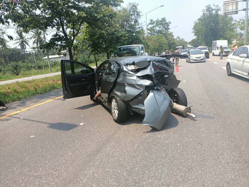 ที่เกิดเหตุบนถนนเพชรเกษมขาล่องใต้ หลัก กม.ที่ 381 - 382 ก่อนถึงหน้า สภ.บางสะพาน ประมาณ 500 เมตร พื้นที่ ม.5 ต.ร่อนทอง อ.บางสะพาน จ.ประจวบคีรีขันธ์ พบรถเก๋งนิสสัน อาเมร่า สีเทาดำ สภาพถูกชนท้ายยุบถึงห้องโดยสาร จอดขวางถนนเพชรเกษมในช่องทางขวา มีนายสำราญ อายุ 62 ปี เป็นคนขับ ถัดมาพบ รถยนต์เก๋งนิสสัน เอ็กซ์เทรล สีดำ อยู่ไหล่ทางด้านซ้ายสภาพหงายท้องล้อชี้ฟ้า มีนายสุรพงษ์ อายุ 56 ปี เป็นคนขับ ห่างไปประมาณ 30 เมตร พบรถบรรทุกโม่ปูนสีขาว มีนายกิตติ อายุ 31 ปี เป็นคนขับ สภาพกันชนหน้าหลุดจอดอยู่ไหล่ทางด้านซ้าย ห่างไปอีก 20 เมตรพบรถกระบะอีซูซุใส่ตู้ทึบ สีขาว มีนายสิทธิพงษ์ อายุ 22 ปี เป็นคนขับสภาพมีรอยชนบริเวณด้านประตูฝั่งคนขับ จอดอยู่ไหล่ทางด้านซ้ายห่างออกไปอีกประมาณ 30 เมตร พบรถกระบะเอ็มจี สีขาว มีนายภูรินทร์ อายุ 34 ปีเป็นคนขับ ด้านหน้ายุบไปถึงห้องโดยสารหล่นลงไปอยู่ในร่องถนนด้านซ้าย มีคนเจ็บหลายรายติดอยู่ภายในรถ