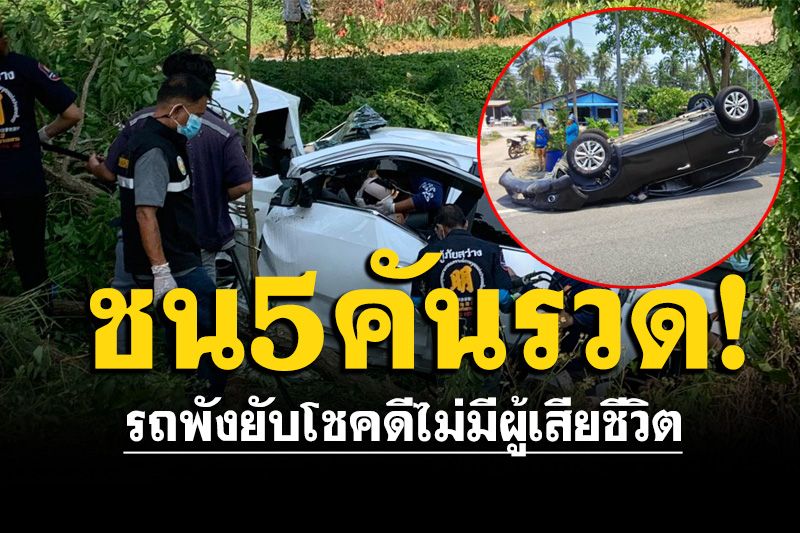 วันที่ 9 เมษายน 2565 เวลา 15.00 น. ร.ต.ท.ยงยุทธ ขัตติยะ รองสารวัตรสอบสวน สภ.บางสะพาน จ.ประจวบคีรีขันธ์ รับแจ้งเหตุรถยนต์ชนกัน 5 คันรวด มีผู้ได้รับบาดเจ็บหลายราย จึงประสาน เจ้าหน้าที่กู้ชีพเทศบาลตำบลร่อนทอง, กู้ภัยมูลนิธิสว่างราษฏร์ศรัทธาธรรมสถาน, เจ้าหน้าที่กู้ชีพโรงพยาบาลบางสะพาน และกู้ภัยตำรวจทางหลวง พร้อมรถอุปกรณ์ตัดถ่างลงตรวจสอบที่เกิดเหตุ