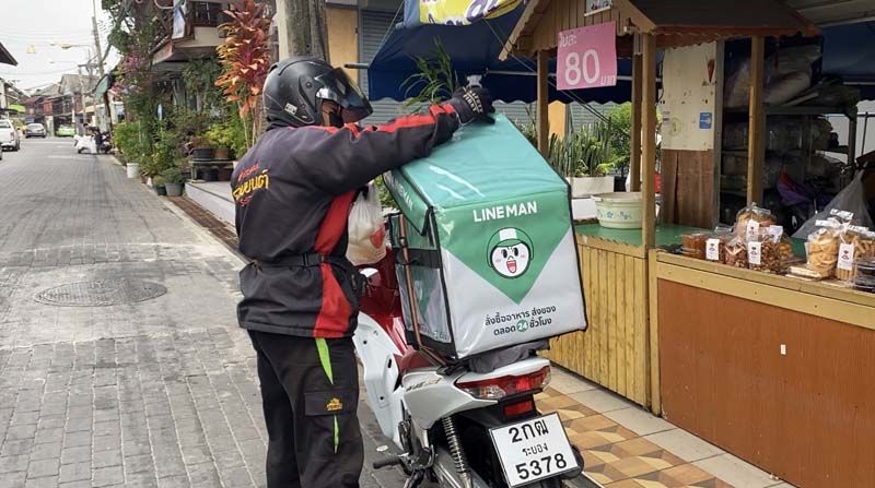 ผู้สื่อข่าวรายงานด้วยว่า นอกจากการขายข้าวเหนียวมะม่วงที่หน้าร้านมีลูกค้ามาซื้อกันคึกคัก ยังมี ไรเดอร์รับออเดอร์ข้าวเหนียวมะม่วง มารับจากที่ร้านไปส่งเป็นจำนวนมาก