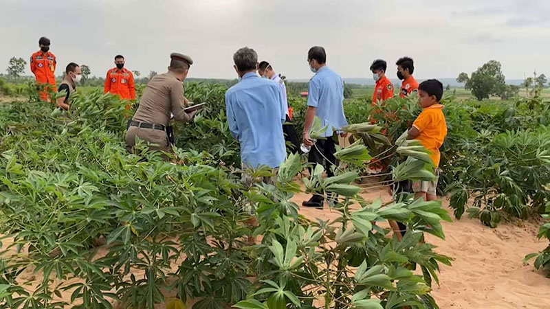 ร.ต.อ.สิทธิศักดิ์ บุญหล้ำ รองสารวัตรสอบสวนหลังจากได้รับแจ้งเหตุรีบแจ้งหน่วยกู้ภัย ตร.ทางหลวงจุดบริการอำเภอโนนสะอาด ออกตรวจสอบที่เกิดเหตุพร้อมออกตรวจสถานที่เกิดเหตุเป็นพื้นที่ป่ามันสำปะหลัง บริเวณที่เกิดเหตุพบผู้นำหมู่บ้านและชาวบ้านจำนวนหนึ่ง พร้อมกับญาติผู้เสียชีวิตรออยู่ในจุดเกิดเหตุ