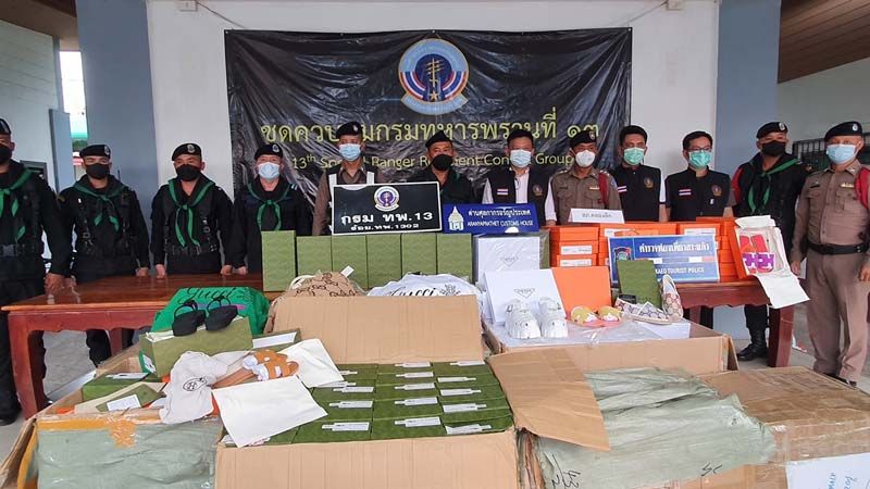 ซึ่งจากการตรวจสอบเบื้องต้นพบมีรองเท้าสุภาพสตรีละเมิดลิขสิทธิ์แบรนด์หรูต่างประเทศ ยี่ห้อ แอร์เมส ,พราด้า และ กุชชี่ บรรจุกล่องสวยหรูพร้อมใบรับประกันปลอมจำนวน220 คู่ ,เสื้อยืดละเมิดลิขสิทธิ์แบรนด์หรูยี่ห้อบาเลนเซียก้า และกุชชี่ จำนวน 53ตัว และกางเกงขายาวสตรีละเมิดลิขสิทธิ์แบรนด์หรูยี่ห้อกุชชี่ อีก 11 ตัว รวมมีสินค้าละเมิดลิขสิทธิ์ทั้งหมด 284 รายการ