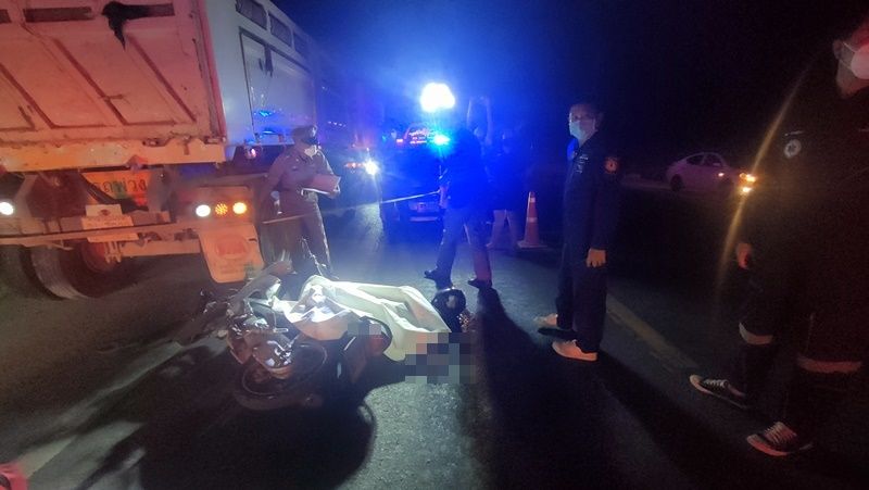 หลังจากนั้นเจ้าหน้าที่ได้ตรวจสอบรถบรรทุกพบว่ารถ จยย.ของผู้ตายได้ไปชนกับเหล็กกันไฟท้ายของรถบรรทุกแล้วกระเด็นหัวไปชนกระบะรถบรรทุกอย่างเต็มแรงทำให้เสียชีวิตคาที่อย่างเต็มแรงดังกล่าว - 003