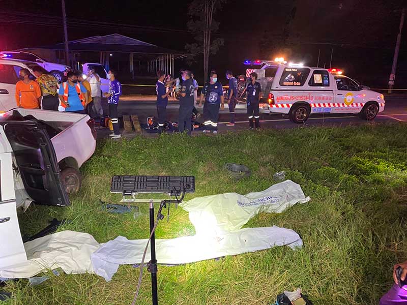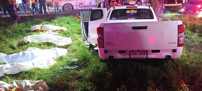 29 พฤษภาคม 2565 เมื่อเวลา 03.00 น. ผู้สื่อข่าวรายงานว่า ร.ต.อ.จเร พูลแก้ว รอง สว.(สอบสวน) สภ.ท่าศาลา จ.นครศรีธรรมราช ได้รับแจ้งว่าเกิดอุบัติเหตุรถยนต์กระบะเสียหลัก พุ่งชนต้นไม้ร่องกลางถนน ทำให้มีผู้เสียชีวิตคาที่ 5 ราย เจ็บสาหัส 1 ราย เหตุเกิดบนถนนสาย 401 นครศรีธรรมราช - สุราษฎร์ธานี หมู่ 5 ต.สระแก้ว อ.ท่าศาลา จึงพร้อมด้วย พ.ต.ท.เกษมสิทธิ์ จำปาทอง รอง ผกก.(สอบสวน),แพทย์เวรโรงพยาบาลท่าศาลา และเจ้าหน้าที่มูลนิธิประชาร่วมใจ เดินทางไปตรวจสอบที่เกิดเหตุ