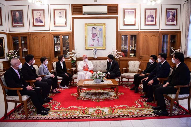 จากนั้น ผู้ว่าราชการกรุงเทพมหานคร นำคณะผู้บริหารกรุงเทพมหานคร เข้าเยี่ยมคำนับ พระคาร์ดินัลฟรังซิสเซเวียร์เกรียงศักดิ์ โกวิทวาณิช อัครราชแห่งอัครสังฆมณฑลกรุงเทพฯ ณ อาคารสำนักพระสังฆราช สำนักมิสชังโรมันคาทอลิกกรุงเทพฯ โดยพระคุณเจ้าเกรียงศักดิ์ ได้แสดงความยินดีกับท่านผู้ว่าฯ ในโอกาสเข้ารับตำแหน่ง พร้อมแสดงความห่วงใยในภาระหน้าที่อันมากมายท่ามกลางความคาดหวังของประชาชน ยังได้เล่าเรื่องราวของคาทอลิกในประเทศไทยและเหตุการณ์สำคัญต่างๆ เพื่อบอกถึงร่องรอยทางประวัติศาสตร์ของการเผยแพร่ศาสนา และความพร้อมจะเป็นหนึ่งเดียว ความยินดีในการร่วมมือ ร่วมแรงร่วมใจ กับงานต่างๆ เพื่อจะเป็นประโยชน์กับสังคมในส่วนรวม และหน่วยงานของกรุงเทพมหานคร โอกาสนี้ พระคุณเจ้าเกรียงศักดิ์ได้มอบหนังสือที่ระลึกต่างๆ และหนังสือคำสอนคาทอลิกในด้านสิ่งแวดล้อมและด้านสังคม พร้อมนำเยี่ยมชมอาสนวิหารอัสสัมชัญ