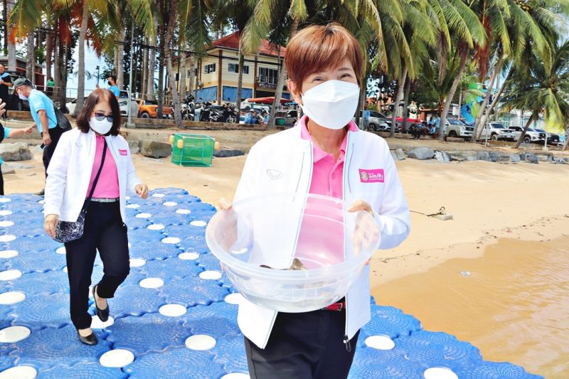 วันที่ 23 ก.ค.65 ที่ชายหาดบางเสร่ ต.บางเสร่ อ.สัตหีบ จ.ชลบุรี กลุ่มวิสาหกิจชุมชนเรือท่องเที่ยวและกีฬา บางเสร่ กลุ่มเกษตรกรทำประมงบางเสร่ กลุ่มประมงเรือเล็ก ร่วมกับกลุ่มกีฬาทางน้ำบ้านอำเภอ Pattaya water Sports จัดกิจกรรม รักษ์ทะเลไทย รักแม่ ปล่อยสัตว์น้ำ เพื่อฟื้นฟูธรรมชาติและสิ่งแวดล้อมทางทะเลให้คงอยู่และยั้งยืน โดยมีพระครูวิธานธรรมมานุยุต เจ้าคณะตำบลบางเสร่ เจ้าอาวาสวัดบางเสร่คงคาราม ว่าที่ ร.ต.อุดม จิตต์ถนอม ประธานฯ กลุ่มวิสาหกิจชุมชนเรือท่องเที่ยวและกีฬา บางเสร่ เทศบาลตำบลบางเสร่ ผู้แทน ส.ส.เขต8 ชลบุรี ผู้แทนจากธนาคารออมสิน หมู่บ้าน สิริศา ห้างทองปัญญาบางเสร่ หน่วยงานภาครัฐ ภาคเอกชน ทุกภาคส่วน พี่ น้อง ประชาชน นักเรียน นักศึกษา ในพื้นที่ และทัพเรือภาคที่1 จัดกำลังพล เข้าร่วมกิจกรรมในครั้งนี้