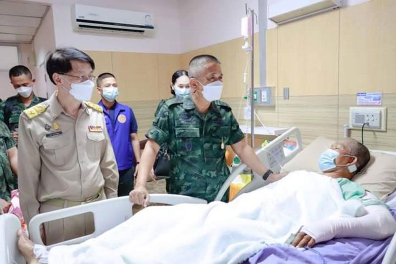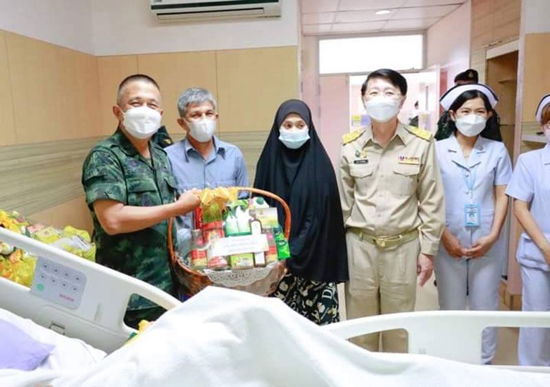 ทั้งนี้ พลตรีปราโมทย์ พรหมอินทร์ รองผู้อำนวยการรักษาความมั่นคงภายในภาค 4 ส่วนหน้า กล่าวว่า พระบาทสมเด็จพระเจ้าอยู่หัวและสมเด็จพระนางเจ้าสิริกิติ์ พระบรมราชินีนาถ ทรงห่วงใย และชื่นชมการทำงานของเจ้าหน้าที่ ตลอดจนขอบคุณเจ้าหน้าที่ ที่เสียสละและป้องปก ดูแล ชีวิตประชาชนอย่างเต็มที่ อีกทั้งได้พูดคุย สอบถามอาการตลอดจนกล่าวให้กำลังใจ ขอให้มีขวัญ และกำลังใจที่ดีขึ้น พร้อมกันนี้ได้มอบกระเช้าเยี่ยมให้กับเจ้าหน้าที่ ที่ได้รับบาดเจ็บ เเละเงินบำรุงขวัญในนาม พลเอก ณรงค์พันธ์ จิตต์แก้วแท้ ผู้บัญชาการทหารบก/รองผู้อำนวยการรักษาความมั่นคงภายในราชอาณาจักร และในนาม พลโท เกรียงไกร ศรีรักษ์ แม่ทัพภาคที่ 4/ผู้อำนวยการรักษาความมั่นคงภายในภาค 4
