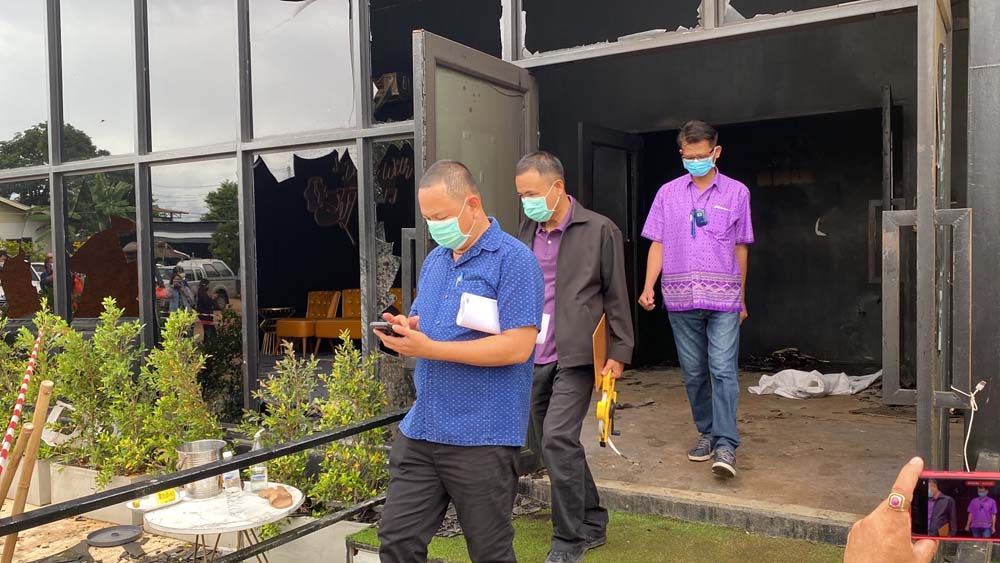วันที่ 5 สิงหาคม 2565 เวลา 10.30 น. พล.ต.ท.ธิติ แสงสว่าง ผบช.ภ.2 พร้อม นายตำรวจในพื้นที่ ภ.จว.ชลบุรี ลงพื้นที่ตรวจสอบที่เกิดเหตุ พร้อมด้วยเจ้าหน้าที่จากกองพิสูจน์หลักฐานเขต 2 ชลบุรี เข้าเก็บหลักฐานในที่เกิดเหตุอย่างละเอียด แต่ระหว่างเข้าเก็บหลักฐานในที่เกิดเหตุ ปรากฏว่า เกิดมีเปลวเพลิงปะทุขึ้นมาบริเวณบนหลังคาขึ้นมาอีกครั้ง จึงทำให้เจ้าหน้าที่ต้องถอนกำลังออก เพื่อความปลอดภัย โดยเบื้องต้น จากการตรวจสอบ ยืนยันว่า ทรัพย์สินภายในอาคารเสียหายเกือบทั้งหมด