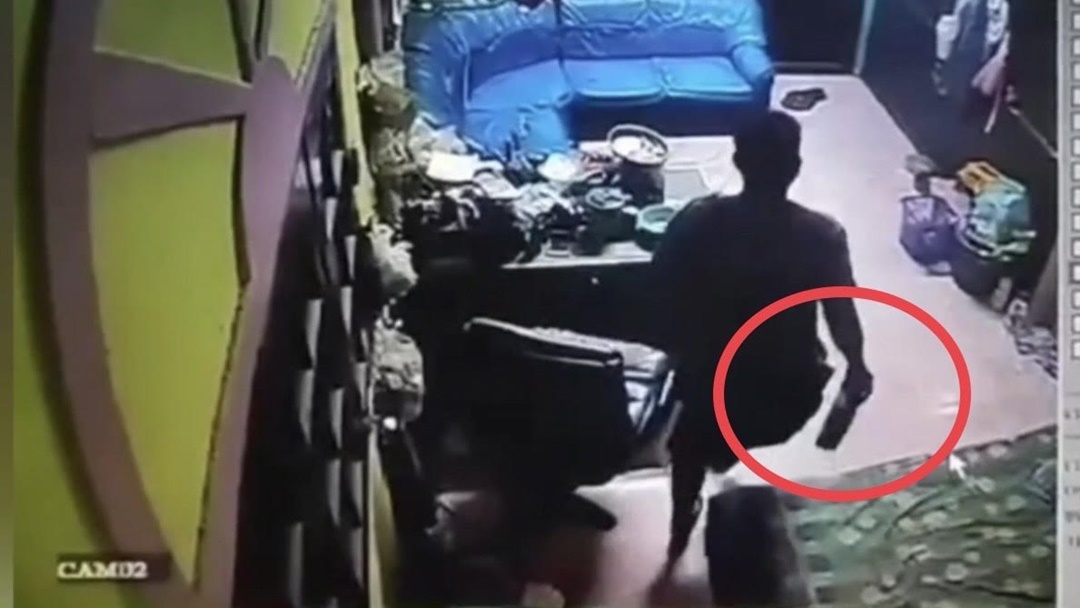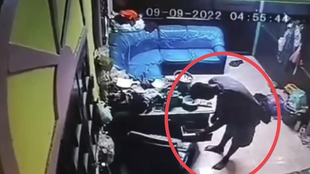 ภาพจากกล้องวงจรปิดบันทึกภาพเหนุการณ์วันที่ 9 ก.ย.65 เวลา 05.30 น.พบนายณัฐชัย (ขอสงวนามสกุล) หรือนายชัย สวมเสื้อยืดสีน้ำเงิน กางเกงขาสั้น เดินเข้ามาภายในบ้านจากนั้นขโมยเงินในลิ้นชักที่โต๊ะทำงาน ก่อนจะเดินไปขโมยปืนในลิ้นชักที่อยู่ปลายเตียงแล้วเดินกลับขึ้นรถกระบะบรรทุกหมู 200 กิโลกรัมขับหลบหนีไป