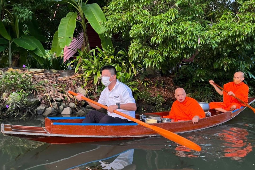‘เด็กวัด’อาสา!‘ผู้ว่าฯสมุทรสงคราม’พายเรือให้เจ้าคณะจังหวัดออกรับบิณฑบาต
