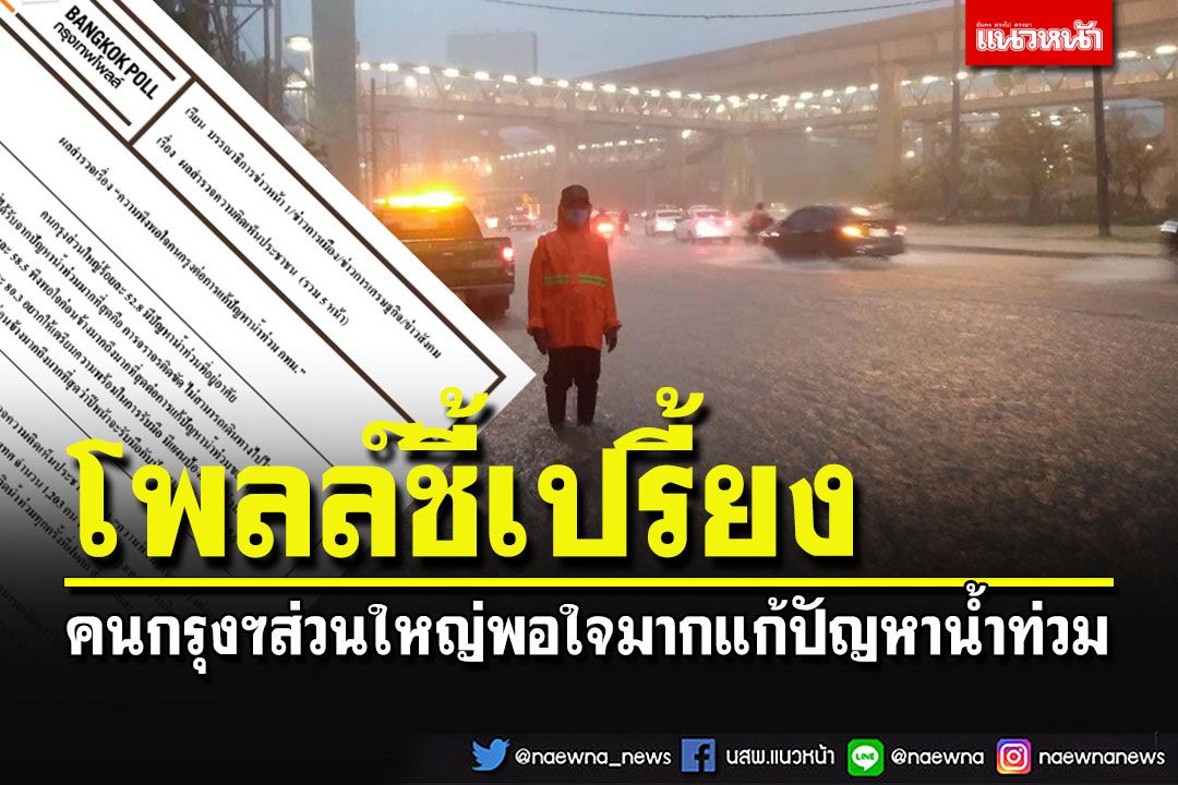 ด้านความพึงพอใจต่อการแก้ปัญหาน้ำท่วมในพื้นที่ กทม. พบว่า ส่วนใหญ่ร้อยละ 58.5 พึงพอใจค่อนข้างมากถึงมากที่สุด ขณะที่ร้อยละ 41.5 พึงพอใจค่อนข้างน้อยถึงน้อยที่สุด