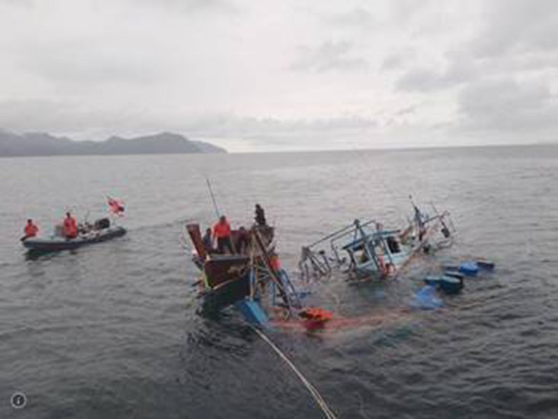 นาวาเอก แสนย์ไท บัวเนียม รอง ผอ.ศรชล จังหวัดสตูล ระบุว่า การช่วยเหลือในครั้งนี้ เกิดขึ้นหลังมีคลื่นลมแรงและฝนตกหนัก ทำให้เรือประมงดังกล่าวอัปปางลง (เมื่อวานนี้ 3 ธ.ค.65) ลูกเรือรวมทั้งไต๋เรือ 8 คน กระโดดเกาะถังน้ำ ลอยคอ โดยมีเรือประมงใกล้ที่เกิดเหตุการณ์เข้ามาช่วยเหลือทุกคนปลอดภัย