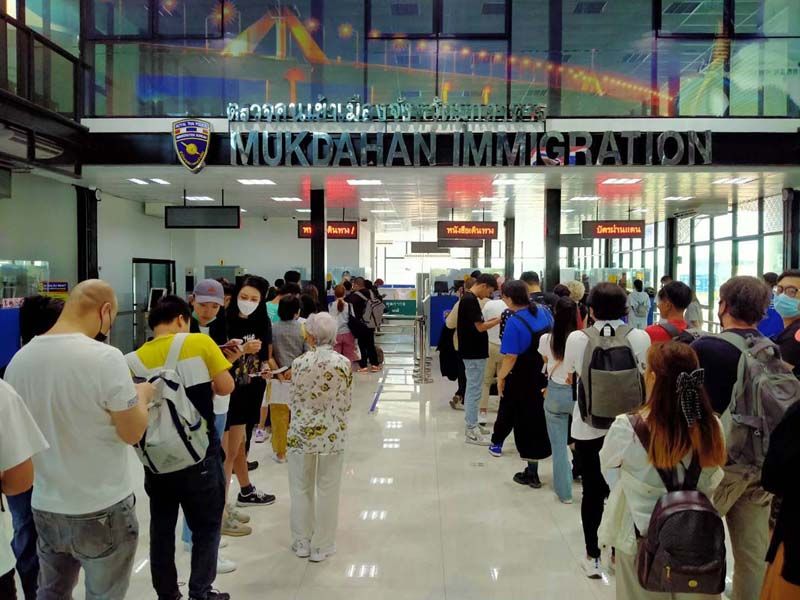 เมื่อวันที่ 30 ธันวาคม 2565 ผู้สื่อข่าวรายงานบรรยากาศช่วงวันส่งท้ายปีเก่าต้อนรับปีใหม่ ที่บริเวณด่านพรมแดนสะพานมิตรภาพไทย-ลาว แห่งที่ 2 (มุกดาหาร-สะหวันนะเขต) เริ่มคึกคักทั้งชาวไทยและชาวไทยลาว แห่เดินทางกลับภูมิลำเนาเพื่อเยี่ยมญาติและฉลองปีใหม่ คึกคักไปด้วยแรงงานชาวลาวที่หอบหิ้วสัมภาระเดินทางข้ามแดนจากฝั่งไทยกลับไปแขวงสะหวันนะเขต สปป.ลาว เฉลี่ยนับพันคนต่อวัน ท่ามกลางการคุมเข้มของเจ้าหน้าที่ ซึ่งนำเครื่องสแกนลายนิ้วมือตรวจสอบประวัติอาชญากรรม ป้องกันผู้กระทำผิดฉวยโอกาสช่วงเทศกาลลักลอบหนีออกนอกราชอาณาจักร