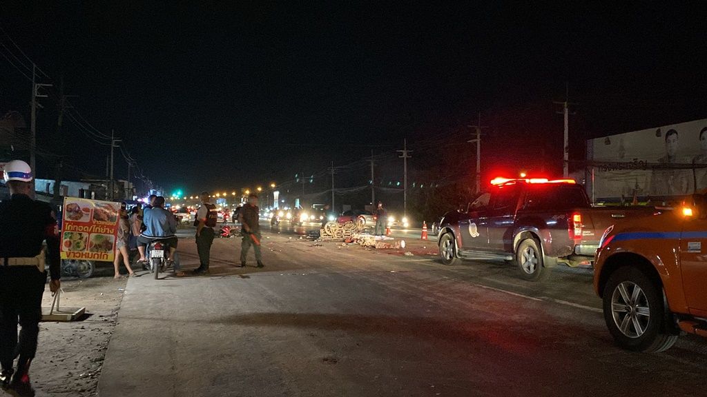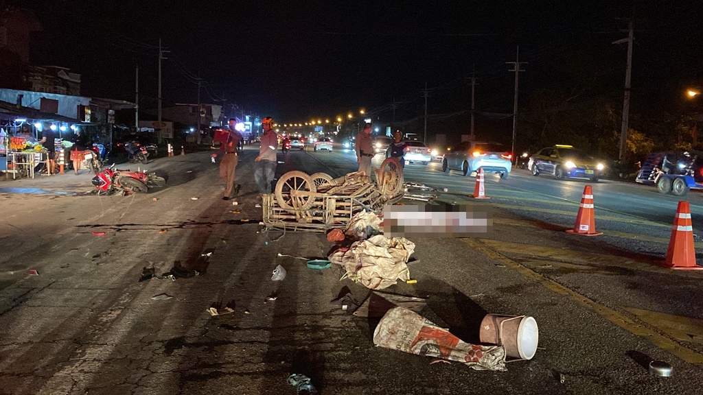 ส่วนรถสามล้อพ่วงข้างถึงกับพลิกคว่ำอยู่กลางถนนคนขับ ซึ่งเป็นชายอายุประมาณ 60-70 ปี ชาวบ้านเรียกว่าลุงแขกเสียชีวิตคาที่ นอกจากนี้ยังทำให้รถจักรยานยนต์ยี่ห้อฮอนด้า เวฟ สีส้มตัดเทา ทะเบียนสงขลา ที่ขับตามหลังมาไปเกี่ยวรถสามล้อพ่วงข้างจนเสียหลักล้มลงอีกคันคนขับซึ่งเป็นนักเรียนอายุ 17 ปี บาดเจ็บปวดไหล่ซ้ายและมีแผลถลอกตามตัว หน่วยกู้ชีพควนลังนำคนเจ็บทั้ง 2 คนส่งโรงพยาบาลหาดใหญ่