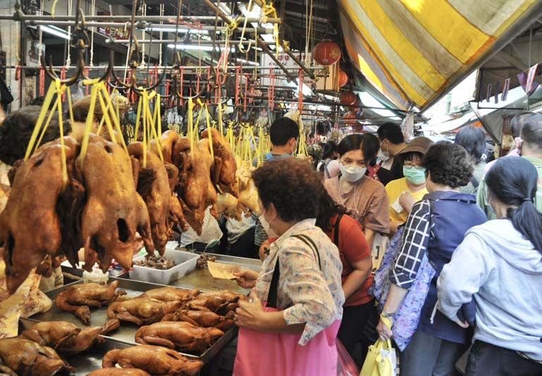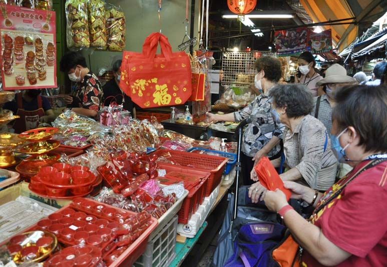 ชาวไทยเชื้อสายจีนจำนวนมากเลือกซื้อเป็ด ไก่ ผลไม้และของเซ่นไหว้ เพื่อนำไปไหว้เทพเจ้า สิ่งศักดิ์สิทธิ์และบรรพบุรุษ ในช่วงเทศกาลตรุษจีน ในปีนี้วันจ่ายตรงกับวันที่ 20 มกราคม 2566 เพื่อความเป็นสิริมงคลให้กับตนเองและครอบครัว ที่ตลาดเก่าเยาวราช กรุงเทพ