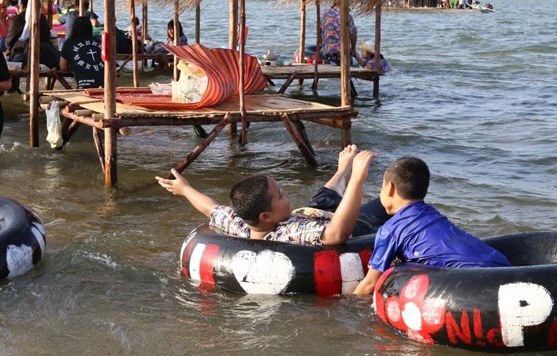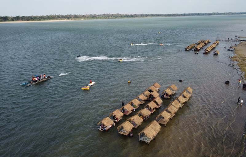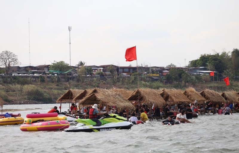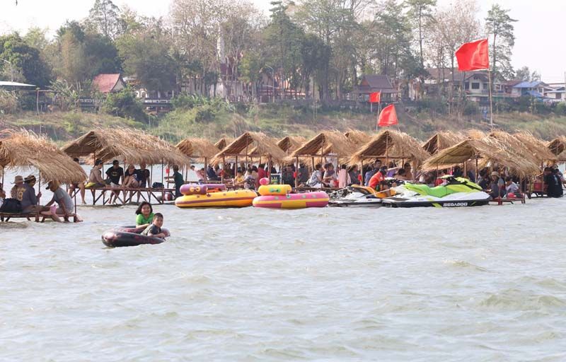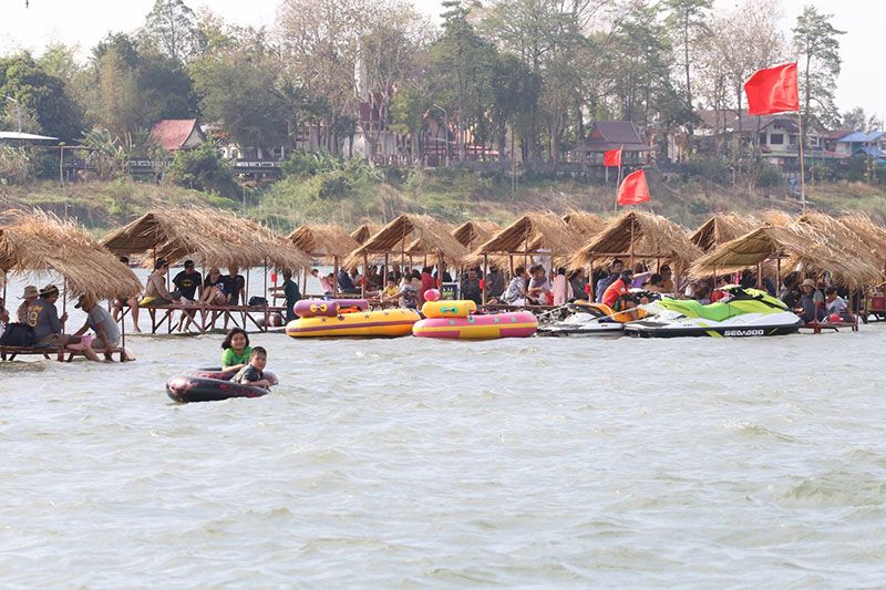 จากนั้นได้ถือโอกาสแวะท่องเที่ยวพักผ่อน แหล่งท่องเที่ยวทางธรรมชาติกลางน้ำโขง โดยทุกๆปีในช่วงฤดูแล้ง หลังน้ำโขงลด ชาวบ้านในพื้นที่จะพลิกวิกฤตเป็นโอกาส ปรับพื้นที่สันดอนทรายกลางน้ำโขง จัดซุ้มร้านค้า ร้านอาหาร บริการจำหน่ายอาหาร เครื่องดื่ม รวมถึงบริการอุปกรณ์เล่นน้ำคลายร้อน มีทั้งห่วงยาง รวมไปถึงเรือสปีดโบท เจ็ทสกี ดูๆไปก็ไม่แตกต่างจากทะเล