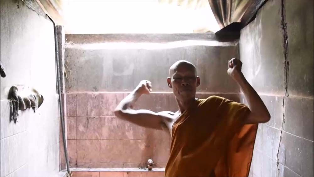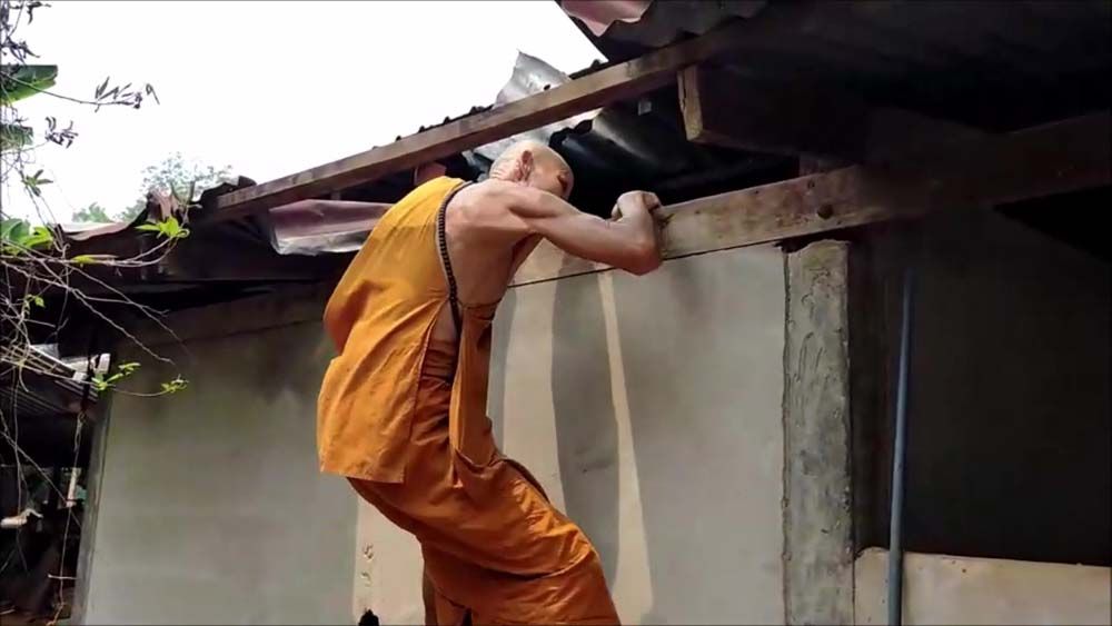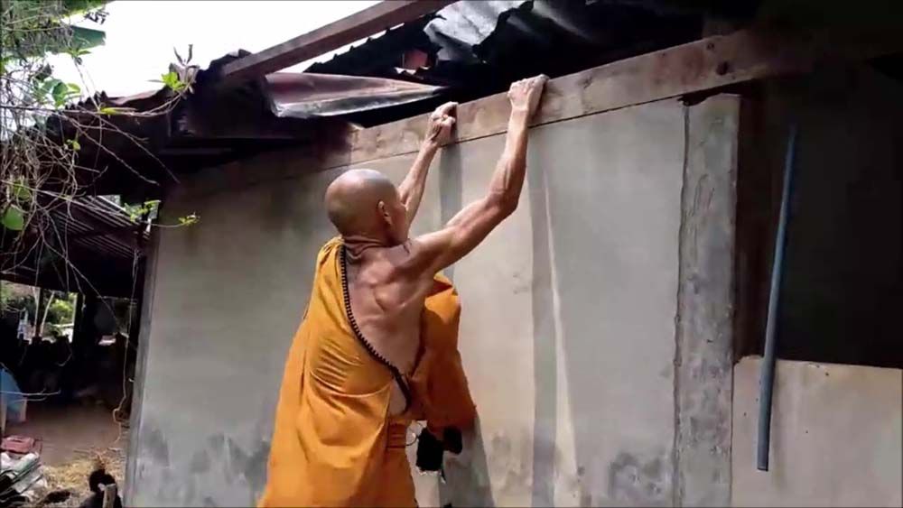 ต่อมาวันนี้ผู้สื่อข่าวได้เดินทางไปวัดสามัคคีธรรม บ้านปอพานอีกครั้ง พบกับหลวงตาบุญโฮมที่ฝ่ากองเพลิงจนช่วยเด็กชาย 2 คนรอดจากกองเพลิงในครั้งนี้ และพาไปดูบ้านที่ไฟไหม้ โดยหลวงตาทำท่าปีนกำแพงปูนของบ้านเข้าไปช่วยเด็ก 2 คนรอดจากอ่างในห้องน้ำรอดได้อย่างปาฏิหาริย์ ขณะที่ผู้สื่อข่าวถามหลวงตามีของดีหรือไม่ หลวงตาก็โชว์แผ่นสักยันต์ให้ดูที่สักไว้ด้านกลางแผ่นหลังแต่ไม่ได้บอกว่าเรียกยันต์อะไร