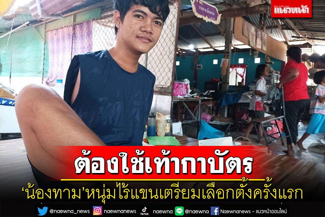 "น้องทาม" หนุ่มไร้แขนอายุครบ 18 ปีแล้ว เตรียมเลือกตั้ง ส.ส.ครั้งแรกในชีวิตที่เขต 4 ตำบลหนองกุลา อำเภอบางระกำ เผยจะต้องใช้ "เท้า" กาบัตรแทน "มือ" อีกทั้งเพิ่งได้รับทุนเรียนฟรี คณะสถาปัตย์ ม.นเรศวร