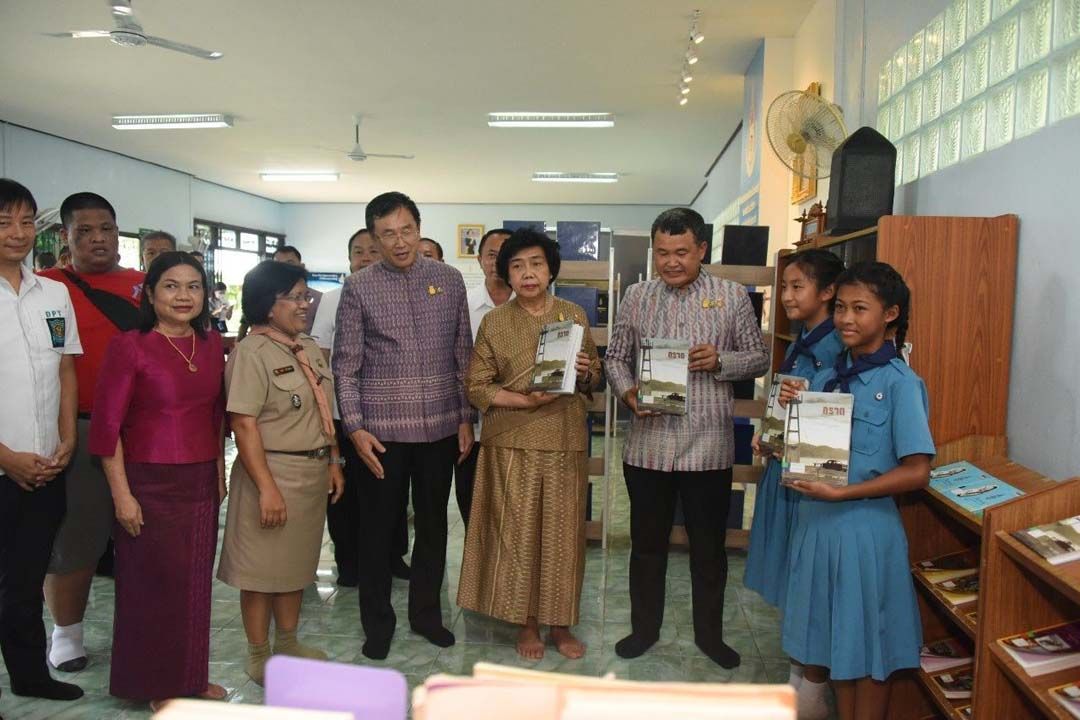 จากนั้น นายสุทธิพงษ์ จุลเจริญ พร้อมด้วย ดร.วันดี กุญชรยาคง จุลเจริญ เป็นประธานส่งมอบการปรับปรุงห้องสมุดโรงเรียนมัธยมกัลยาณิวัฒนาเฉลิมพระเกียรติ 100 ปี วันประสูติ สมเด็จพระเจ้าพี่นางเธอ เจ้าฟ้ากัลยาณิวัฒนา กรมหลวงนราธิวาสราชนครินทร์ พร้อมมอบหนังสือสารานุกรมไทยสำหรับเยาวชน หนังสือประวัติศาสตร์ชาติไทย และหนังสือ “ประวัติศาสตร์เมืองตราด History of Trat” ฯลฯ และเยี่ยมชมนิทรรศการเฉลิมพระเกียรติ นิทรรศการการปรับปรุงห้องสมุดอันเนื่องด้วยพระนามและห้องสมุดสถานที่เนื่องด้วยการเสด็จปฏิบัติพระกรณียกิจของสมเด็จพระเจ้าพี่นางเธอ เจ้าฟ้ากัลยาณิวัฒนา กรมหลวงนราธิวาสราชนครินทร์ จำนวน 6 แห่งทั่วประเทศ และเยี่ยมชมมุมเด็ก พร้อมชมการสาธิตการใช้งานระบบสารสนเทศเพื่อการค้นคว้าซึ่งเป็นความร่วมมือของกรมโยธาธิการและผังเมือง และ TK Park