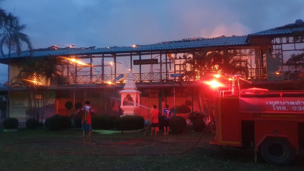 บริเวณที่เกิดเหตุเป็นอาคารเก่าครึ่งตึกครึ่งไม้จำนวน 8 ห้อง เพลิงได้ลุกไหม้อย่างรวดเร็ว เจ้าหน้าที่ได้ระดมรถน้ำจาก อบต.และเทศบาลต่างๆ จำนวน 10 คันมาช่วยกันสกัดเพลิง เจ้าหน้าที่ใช้เวลาประมาณหนึ่งชั่วโมงจึงควบคุมเพลิงไว้ได้ ปรากฎว่าอาคารเรียนไฟไหม้หมดทั้งหลัง