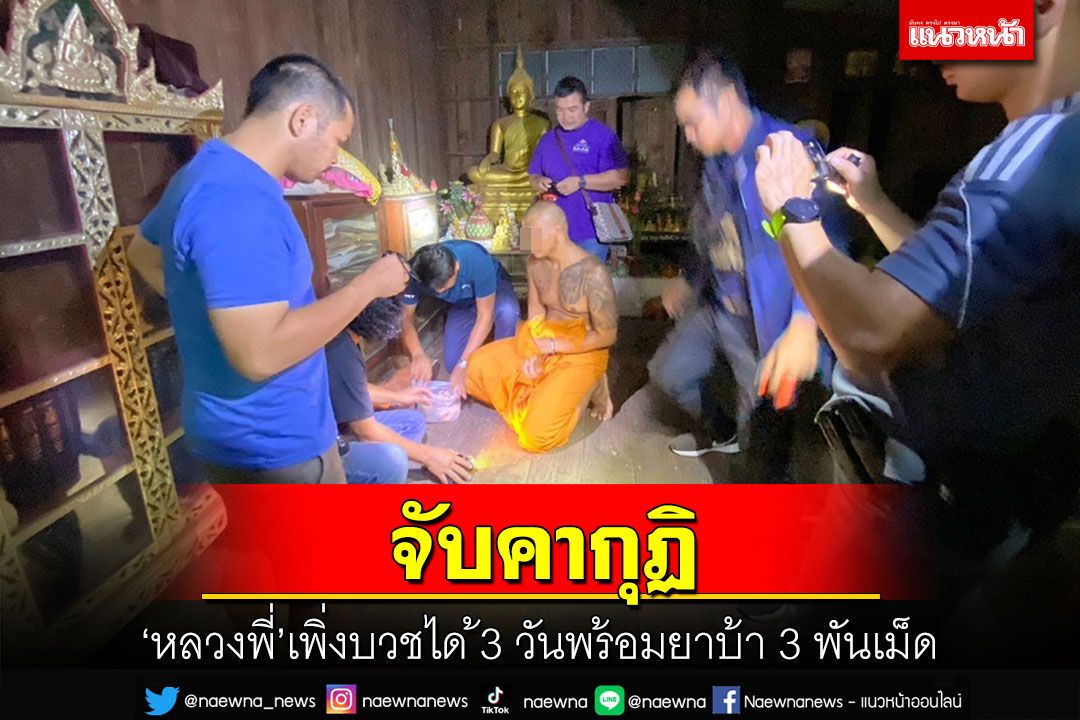 ตำรวจ ชป.ปส.ภ.บุรีรัมย์ ร่วมกับ ตชด. ทหาร และฝ่ายปกครอง บุกจับหลวงพี่ ที่เพิ่งบวชพระได้แค่ 3 วันพร้อมเพื่อนร่วมแก๊งได้ของกลางยาบ้าซุกกุฎิพระร่วม 3,000 เม็ด สารภาพทั้งขายและเสพก่อนจะมาบวชพระ หลังบวชพระวันแห่นาคก็เสพ ก่อนถูกจับก็เพิ่งเสพ อ้างตั้งใจจะเสพให้หมด ก่อนจะเข้าพรรษา
