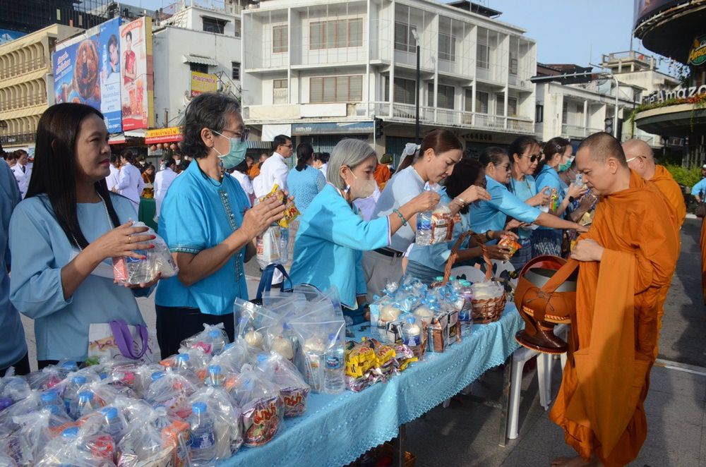ผู้ว่าฯโคราชนำ ขรก-ปชช.ตักบาตรข้าวสารอาหารแห้งพระสงฆ์ 92 รูปหน้าย่าโม ถวายเป็นพระราชกุศล