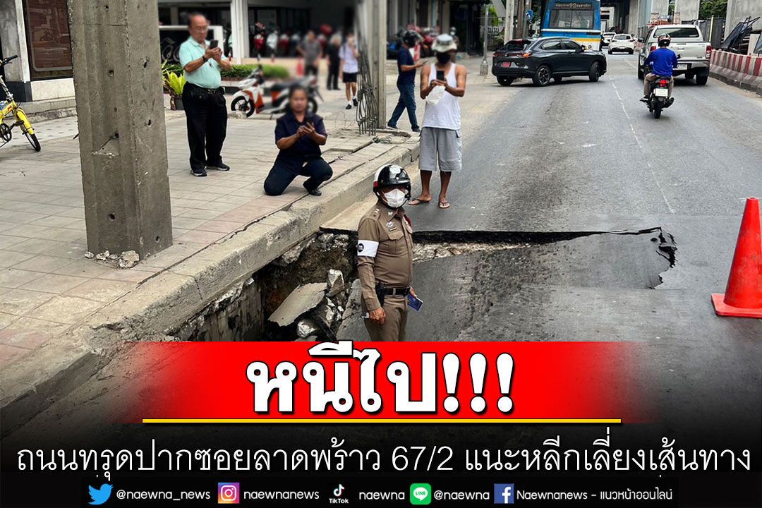 วันที่ 6 กันยายน 2566 เฟซบุ๊ก FM91 Trafficpro โพสต์รายการการจราจร เวลา 16.40 น. กรณีถนนทรุดตัว ก่อนถึงใต้ทางด่วนลาดพร้าว ปากซอยลาดพร้าว 67/2 ผ่านได้เลนขวา เจ้าหน้าที่จะเข้ามาดำเนินการแก้ไขหลัง 22.00 น.