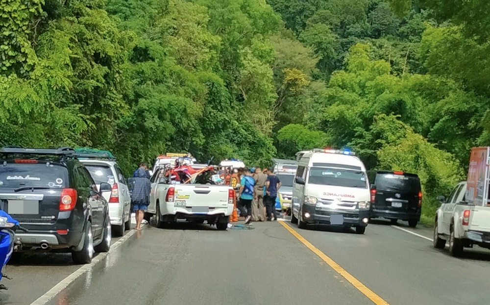 พยาบาล รพ.สังขละบุรี กลับจากส่ง รอง ผอ.สสจ.คนใหม่ ขากลับพบอุบัติเหตุกลางสลดพระสงฆ์มรณภาพคาซาก 2 ศพ สาหัส 1
