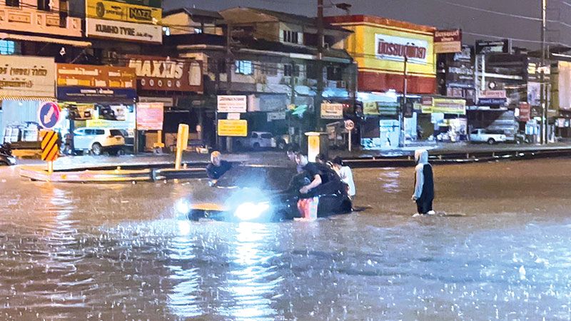 วันเดียวกัน ที่เมืองพัทยา จ.ชลบุรี ผู้สื่อข่าวรายงานว่า ภายหลังมีฝนตกหนักต่อเนื่องกว่า 1 ชั่วโมง ทำให้เกิดน้ำท่วมขังหลายจุด อาทิ ทางหลวงทางเข้าพื้นที่สัตหีบ และทางเข้าเมืองพัทยา ถนนเลียบชายหาด ถนนสุขุมวิทพัทยาใต้ และด้านหน้าสถานีตำรวจทางหลวง มีรถยนต์ได้รับความเสียหายหลายคัน