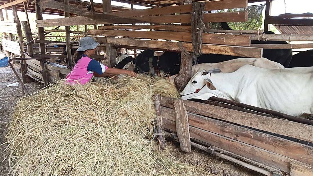 เกษตรกรผู้เลี้ยงวัว ที่หมู่บ้านสะเดา ต.สะเดา อ.พลับพลาชัย จ.บุรีรัมย์ ยิ้มออกที่ไม่ต้องเปลืองแรง ออกไปหาเกี่ยวหญ้า มาเป็นอาหารให้วัวเหมือนทุกวัน หลังเพื่อนบ้านบางราย เริ่มเก็บเกี่ยวข้าวนาปีแล้ว โดยจะไปขอแบ่งเอาฟางข้าวสดๆ ที่ได้จากการเกี่ยวข้าว มาให้วัวกินเป็นอาหารได้หลายวัน ทั้งประหยัดเวลาและยังเป็นการทุ่นแรงอีกด้วย
